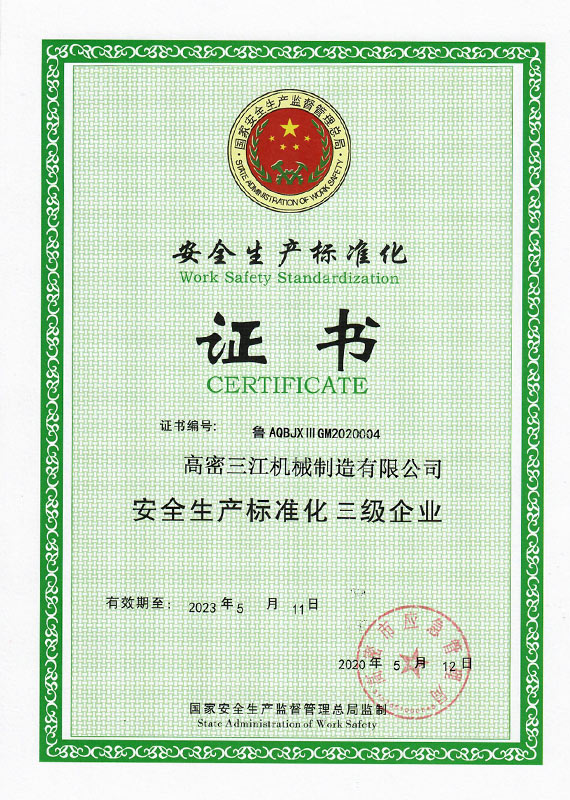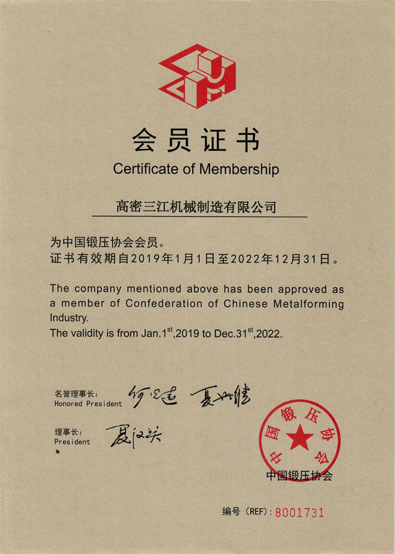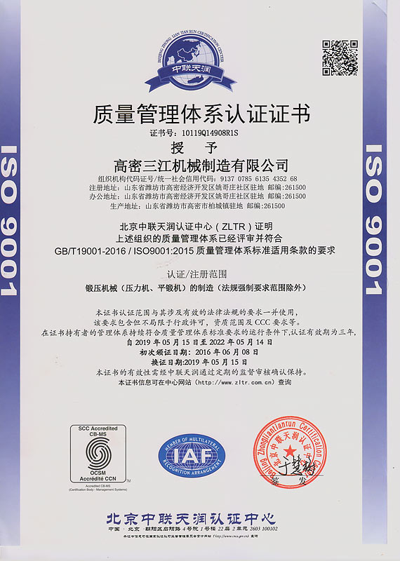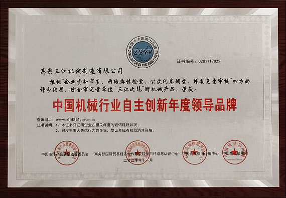 三江机械“以创新求发展”,注重知识产权申请和保护,近年来已获得国家高新技术企业和山东省“专精特新”企业,拥有ISO9001质量管理体系认证和欧盟CE认证。公司注重研发创新,共引进国内先进技术成果3项,取得发明专利5项,实用新型专利30余项,软件著作权5项。先后与南京航空航天大学、山东理工大学、青岛科技大学等高校在金属成形工艺和新材料应用等领域展开合作。