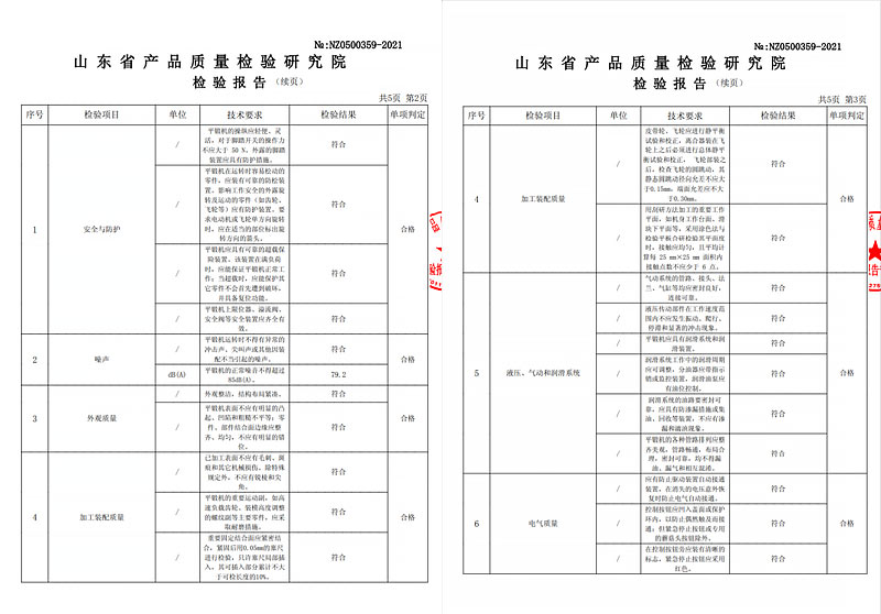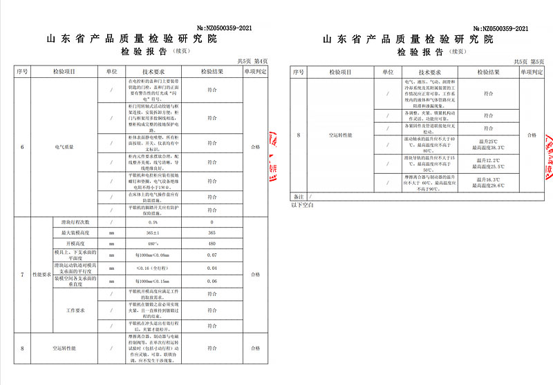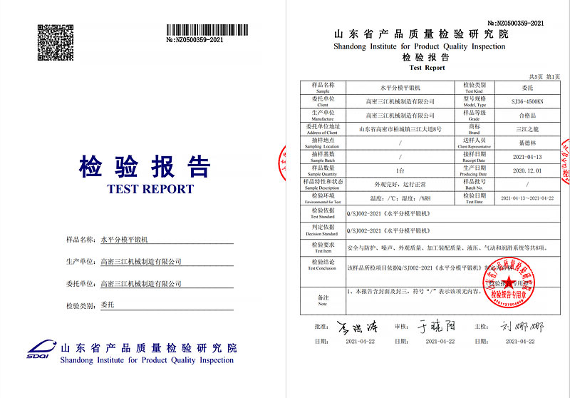 附《锻压机械协会鉴定报告》、《山东省质量检测院--检测报告》
